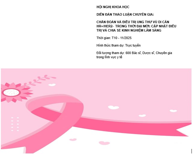 Diễn đàn hứa hẹn là cơ hội quý giá để đội ngũ bác sĩ, chuyên gia cập nhật kiến thức, trao đổi chuyên môn và cùng nhau đưa ra hướng đi hiệu quả trong điều trị ung thư vú tiến xa HR+/HER2- trong bối cảnh lâm sàng ngày càng phức tạp.